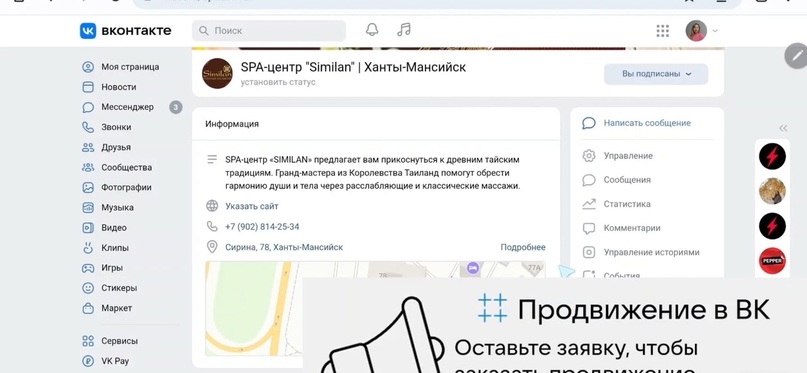 Настройка сообщества Вконтакте для СПА-салона в Мыске